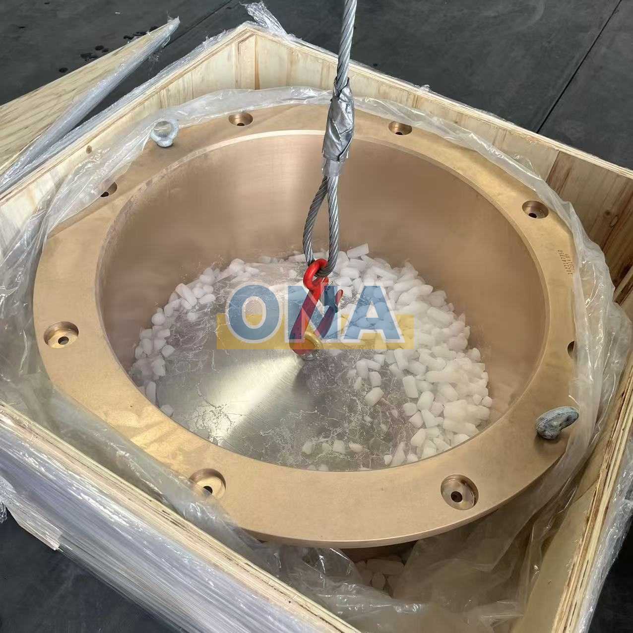 The lower head bushing is one of the key accessories of the head assembly. It is installed in the inner hole of the head assembly with the upper head bushing of the head assembly. The material is copper alloyIt plays the role of lubrication (bearing) and protection during the operation of the crusher, preventing damage caused by direct contact between the head assembly and the main shaft.